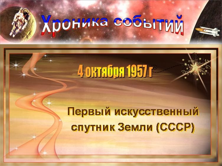 космической эры, запуска Первого искусственного спутника Земли.